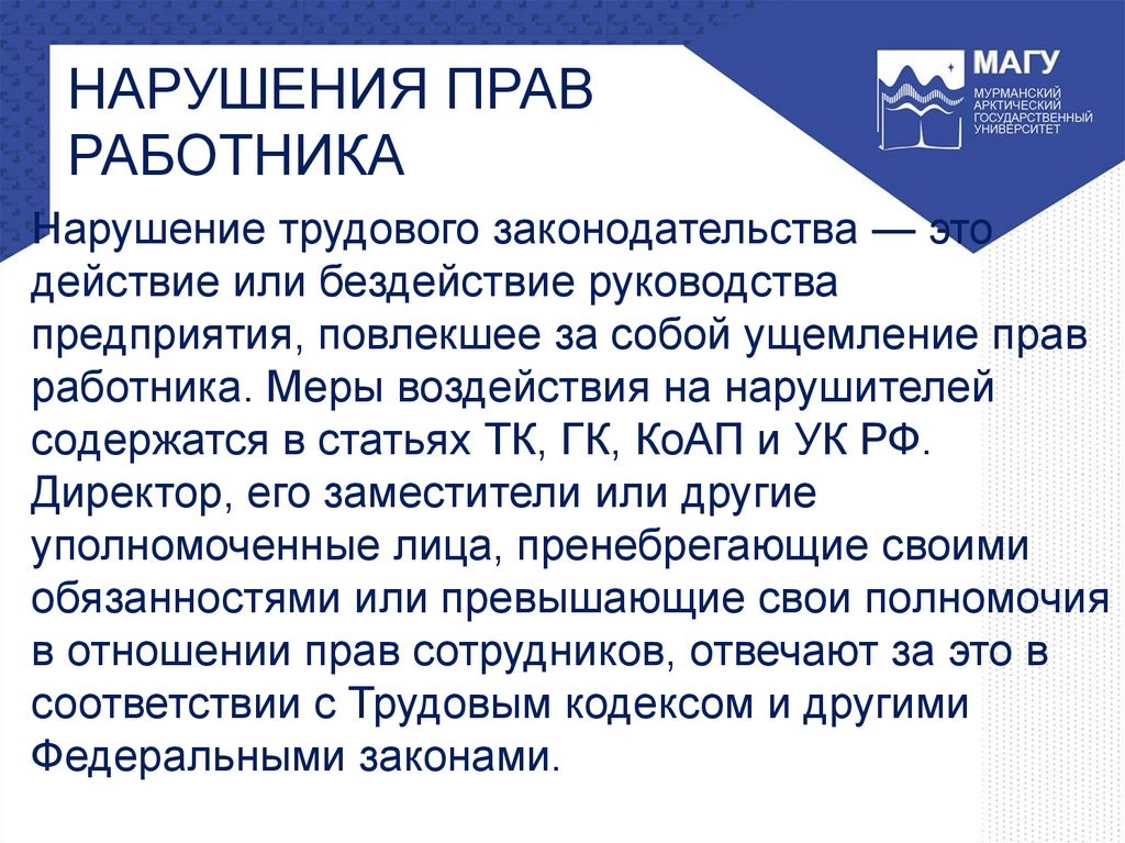 НАРУШЕНИЯ ПРАВРАБОТНИКА