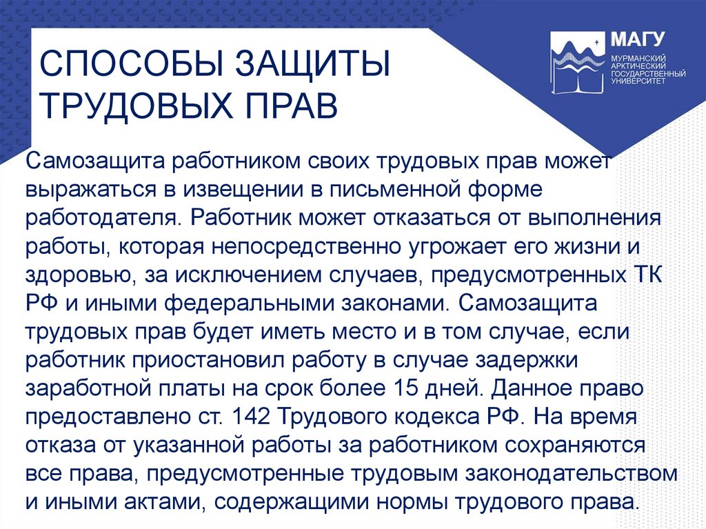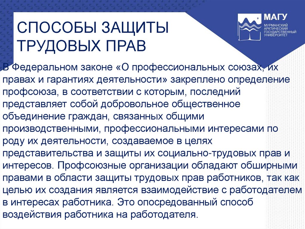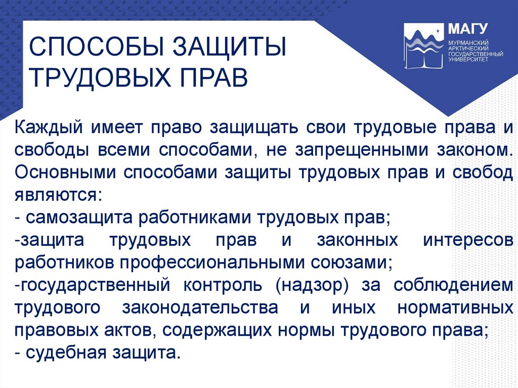 СПОСОБЫ ЗАЩИТЫТРУДОВЫХ ПРАВ