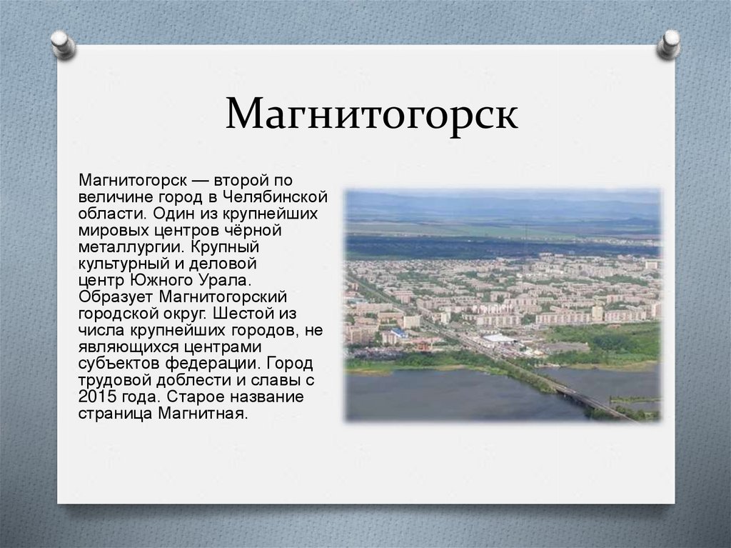 МагнитогорскМагнитогорск — второй по