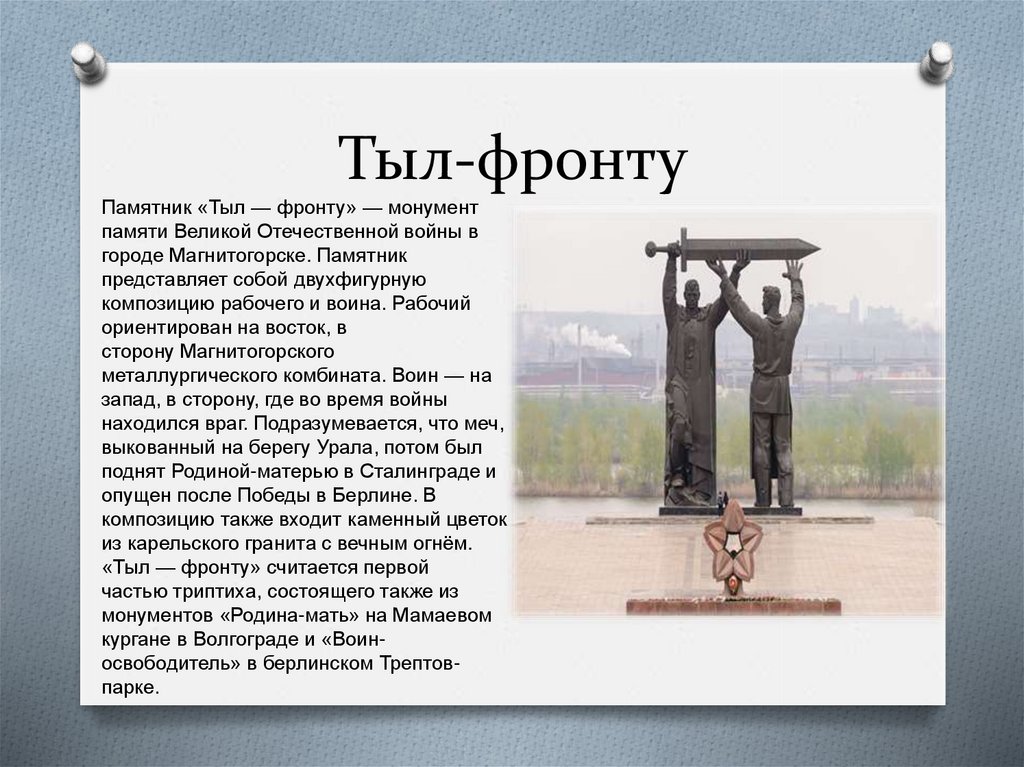 Тыл-фронтуПамятник «Тыл — фронту» — монумент