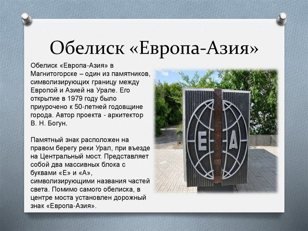 Обелиск «Европа-Азия»Обелиск «Европа-Азия» в