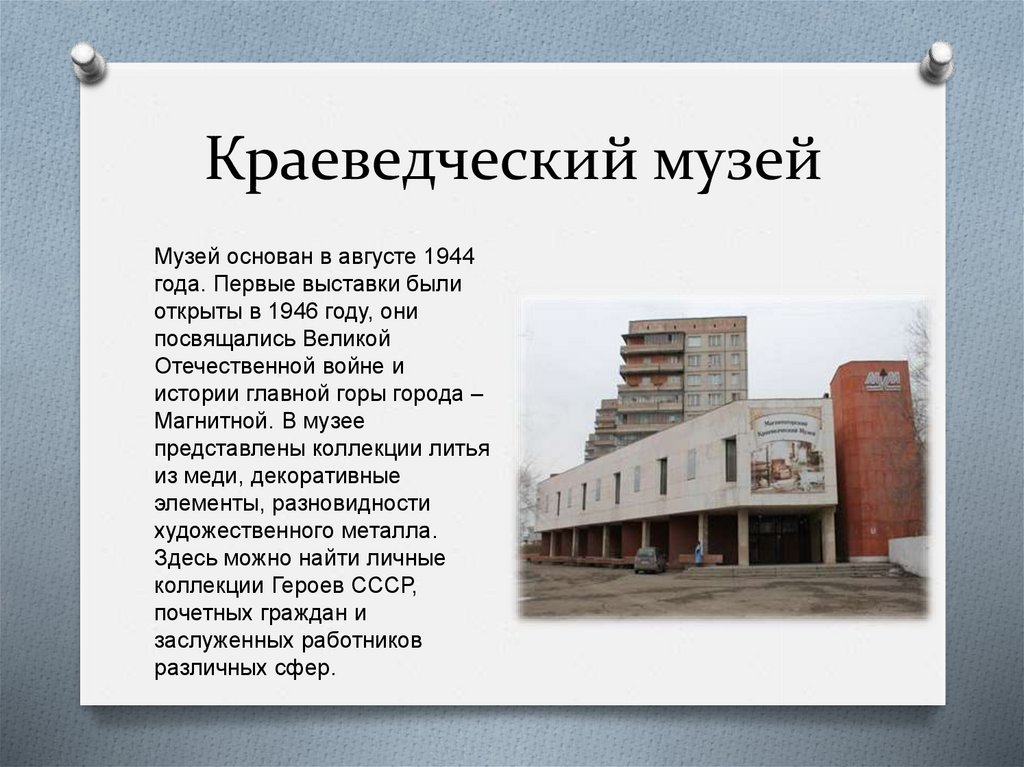 В 1973 г. в Магнитогорске открылся музей,
