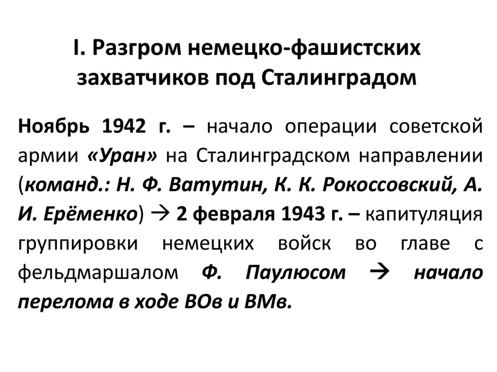 I. Разгром немецко-фашистскихзахватчиков под Сталинградом