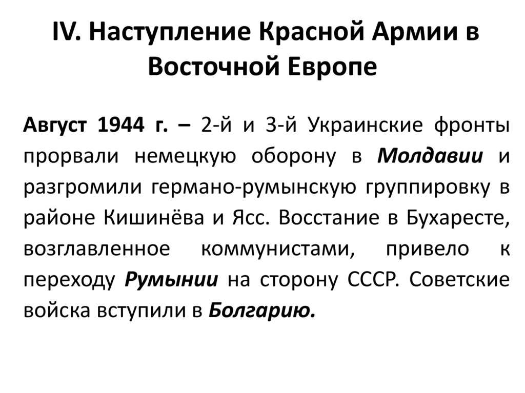 IV. Наступление Красной Армии вВосточной Европе