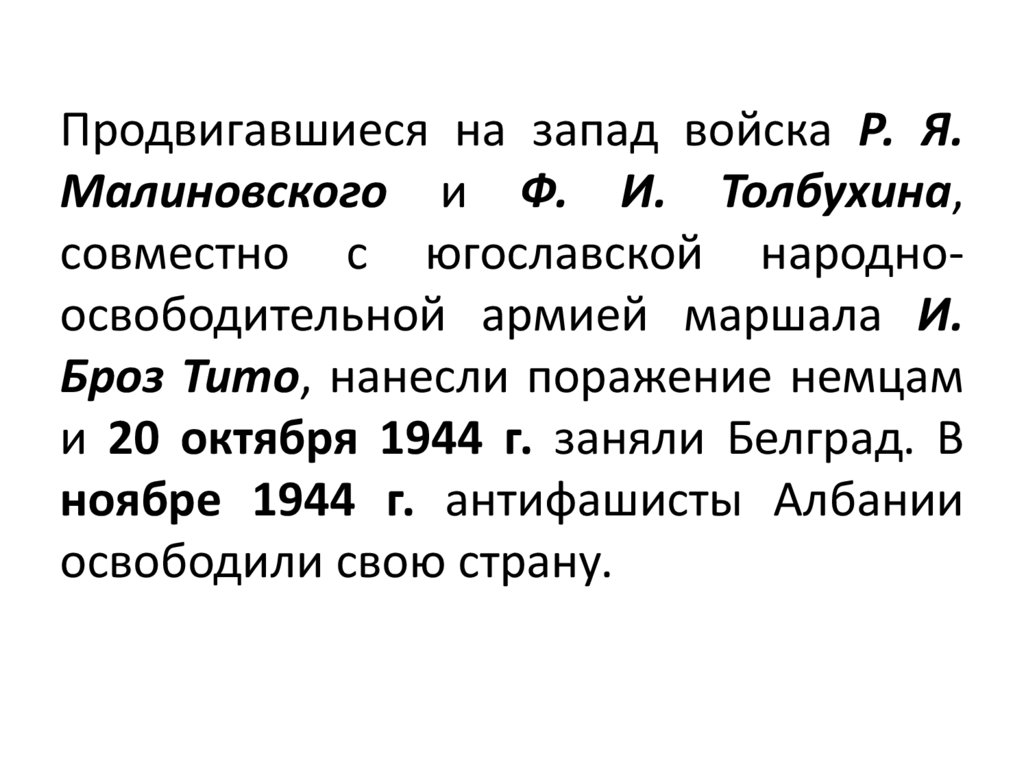 Продвигавшиеся на запад войска Р. Я.Малиновского и Ф. И. Толбухина,