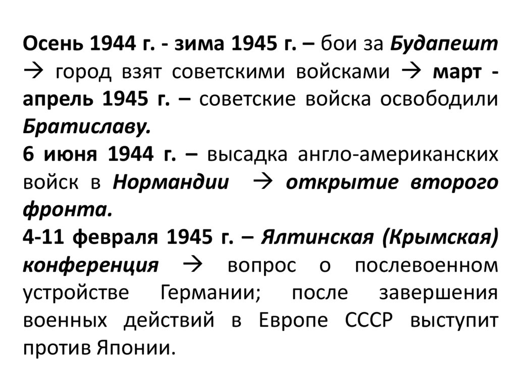 Осень 1944 г. - зима 1945 г. – бои за Будапештгород взят советскими войсками март апрель 1945 г. – советские войска освободили