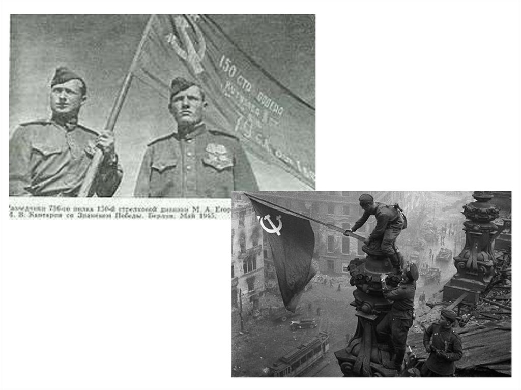 30 апреля 1945 г. – над Рейхстагом взвилосьКрасное Знамя Победы (разведчики М. А.