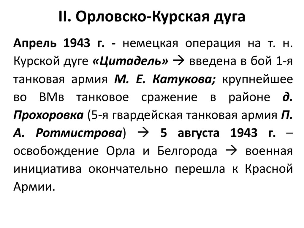 II. Орловско-Курская дугаАпрель 1943 г. - немецкая операция на т. н.