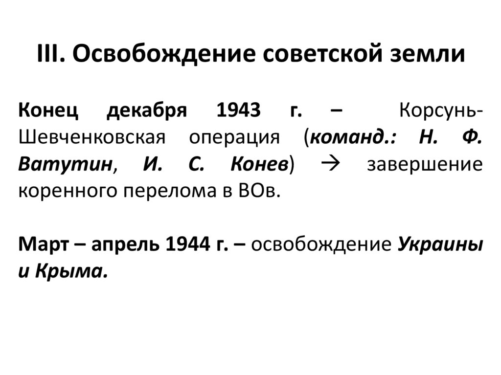 III. Освобождение советской землиКонец декабря 1943 г. –