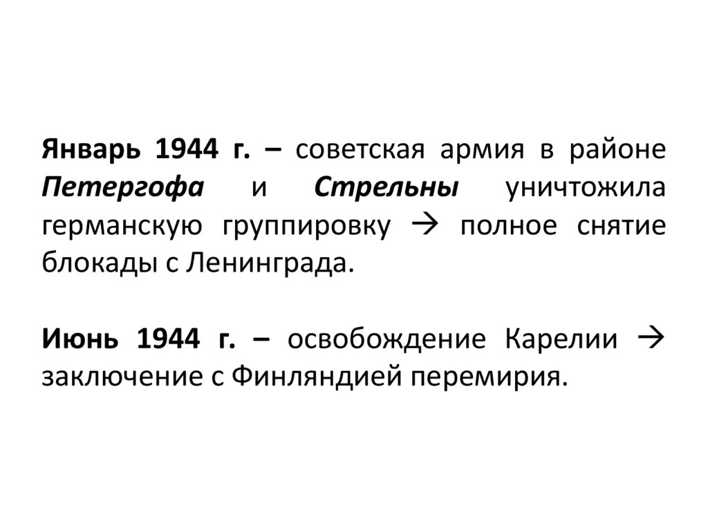 Июнь 1944 г. – освобождение Карелии