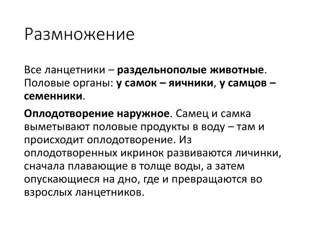 РазмножениеВсе ланцетники – раздельнополые животные.