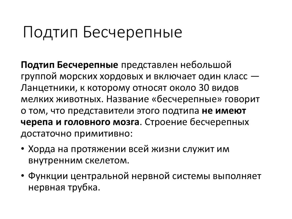 Подтип БесчерепныеПодтип Бесчерепные представлен небольшой