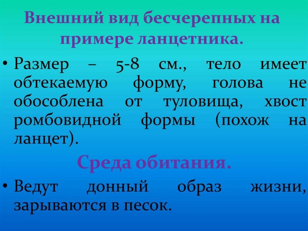 Подтип Бесчерепные.Класс ланцетники