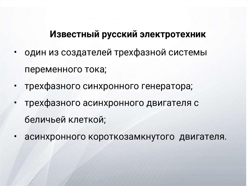 Известный русский электротехник• один из создателей трехфазной системы