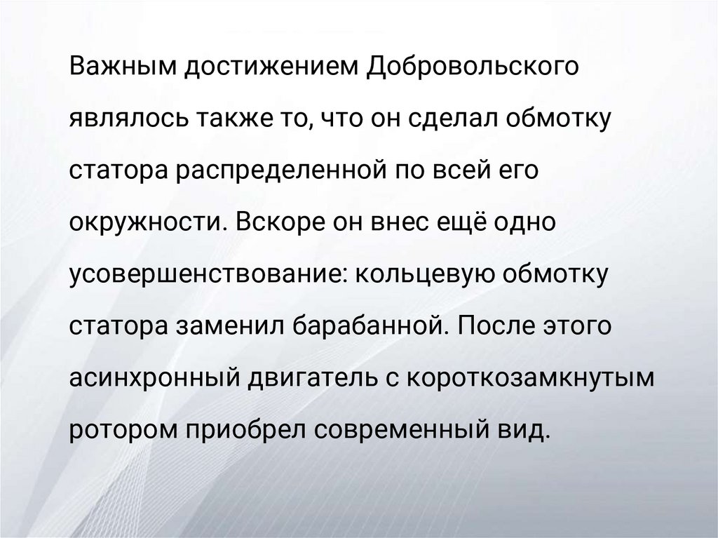 Важным достижением Добровольскогоявлялось также то, что он сделал обмотку