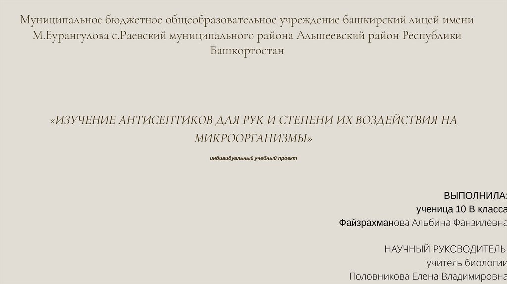«ИЗУЧЕНИЕ АНТИСЕПТИКОВ ДЛЯ РУК И СТЕПЕНИ ИХ ВОЗДЕЙСТВИЯ НА