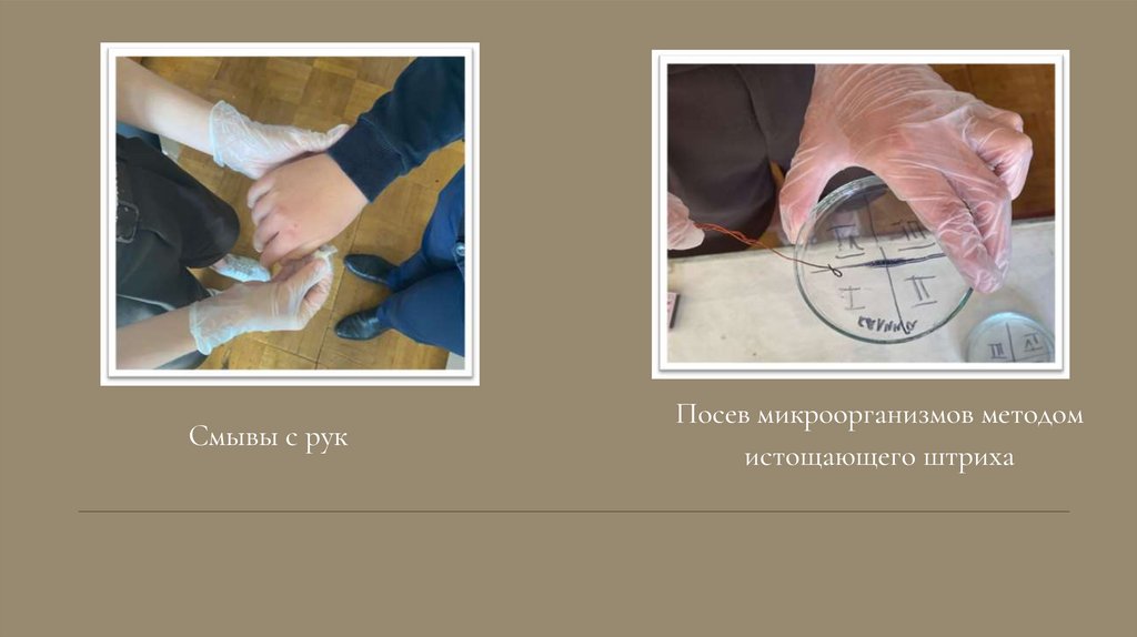 Смывы с рукПосев микроорганизмов методом