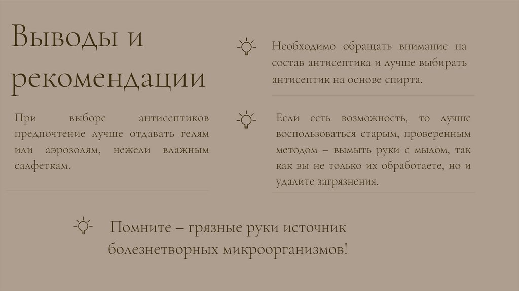 Изучение антисептиков для рук и степени их воздействия на микроорганизмы