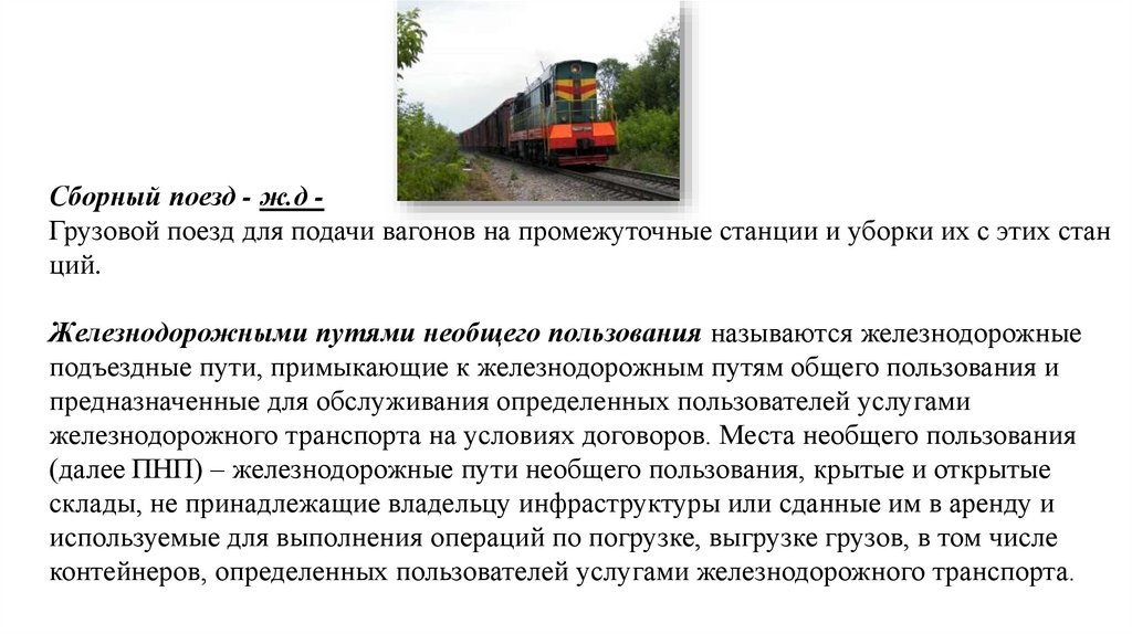 железнодорожного транспорта на условиях договоров. Места необщего пользования