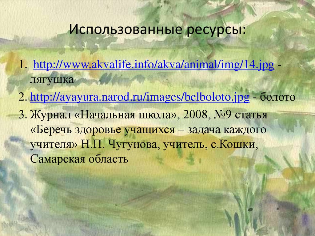 Использованные ресурсы:1. http://www.akvalife.info/akva/animal/img/14.jpg лягушка