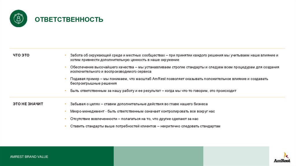 Быть ответственным за нашу работу и ее результат – когда мы что-то говорим, это происходит
