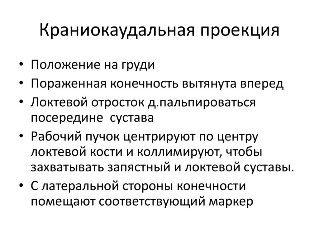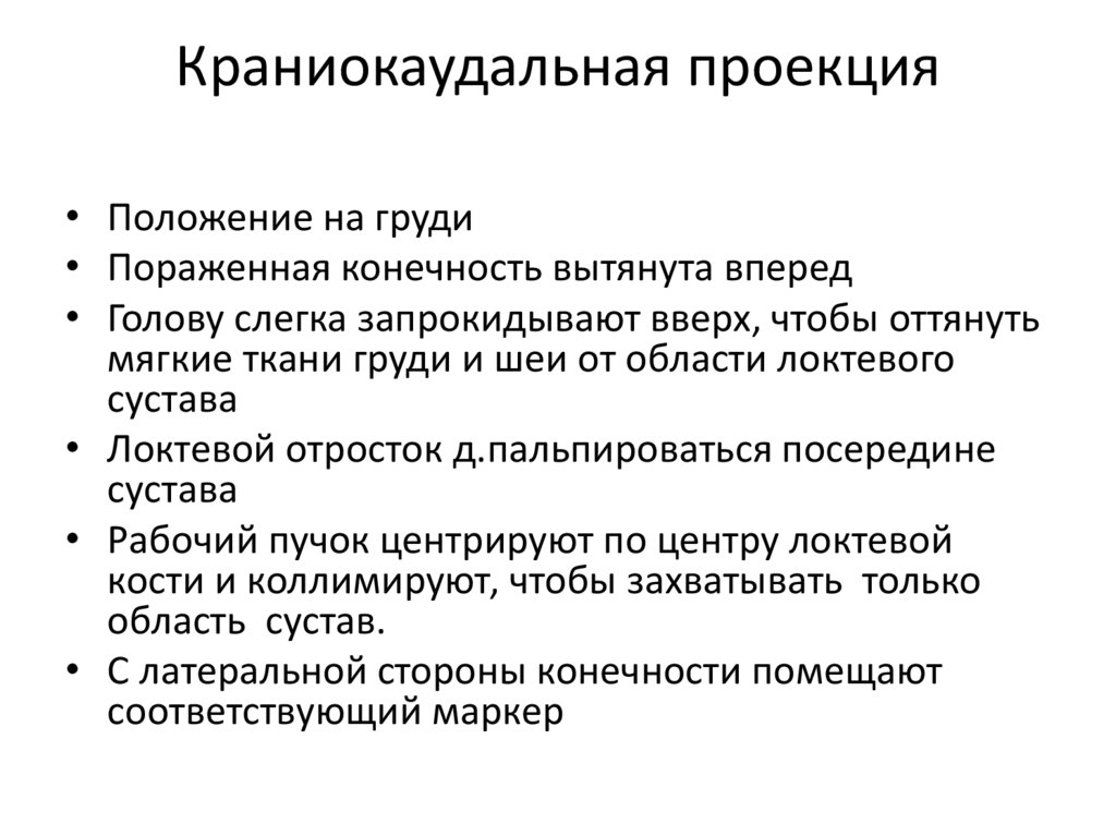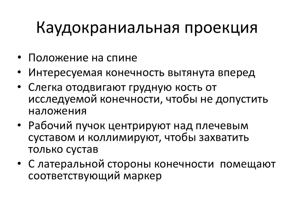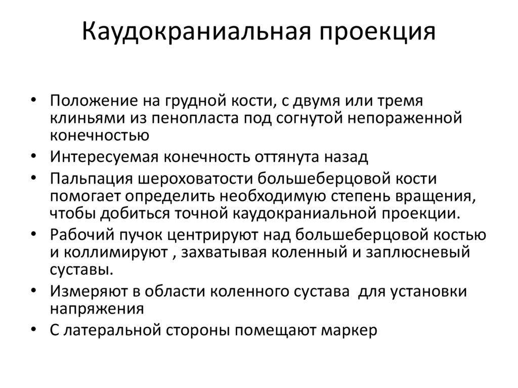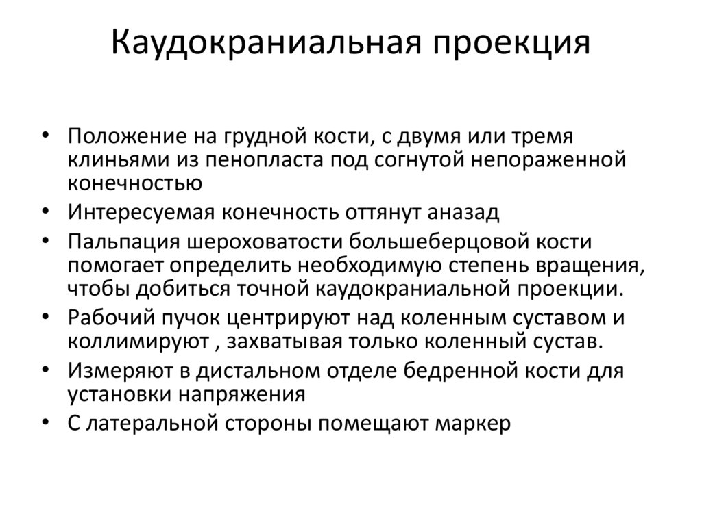 Каудокраниальная проекция• Положение на грудной кости, с двумя или тремя