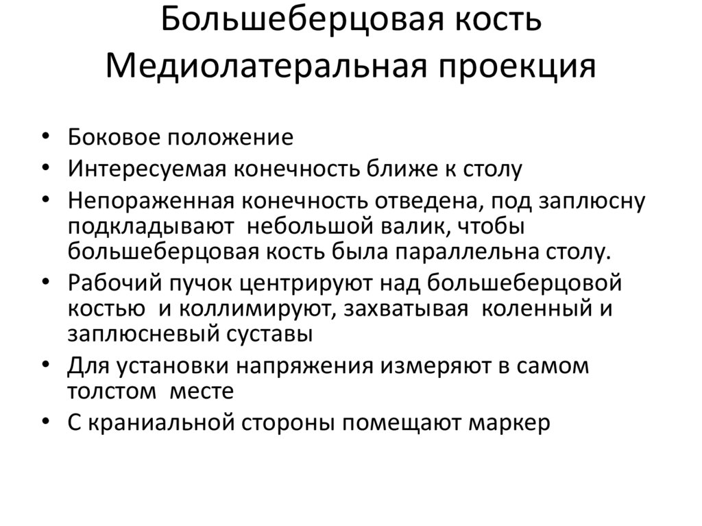 • Рабочий пучок центрируют над большеберцовой костью