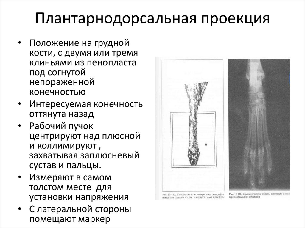 Плантарнодорсальная проекция• Положение на грудной