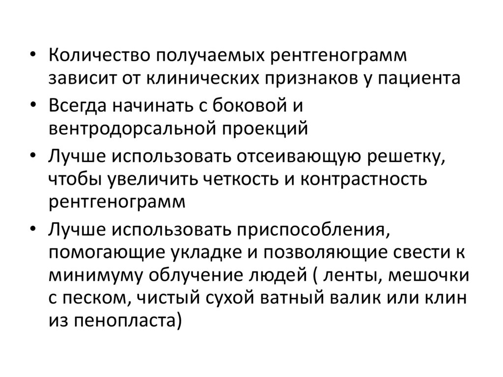 • Количество получаемых рентгенограммзависит от клинических признаков у пациента