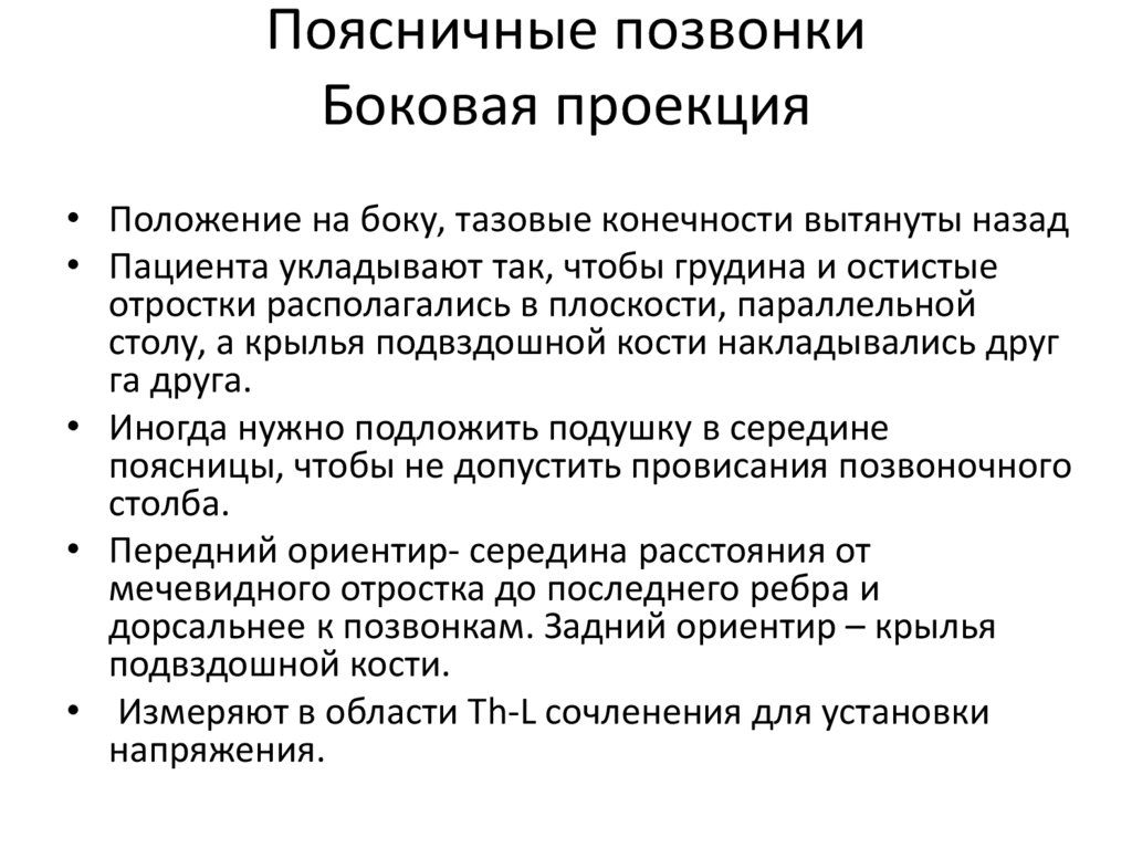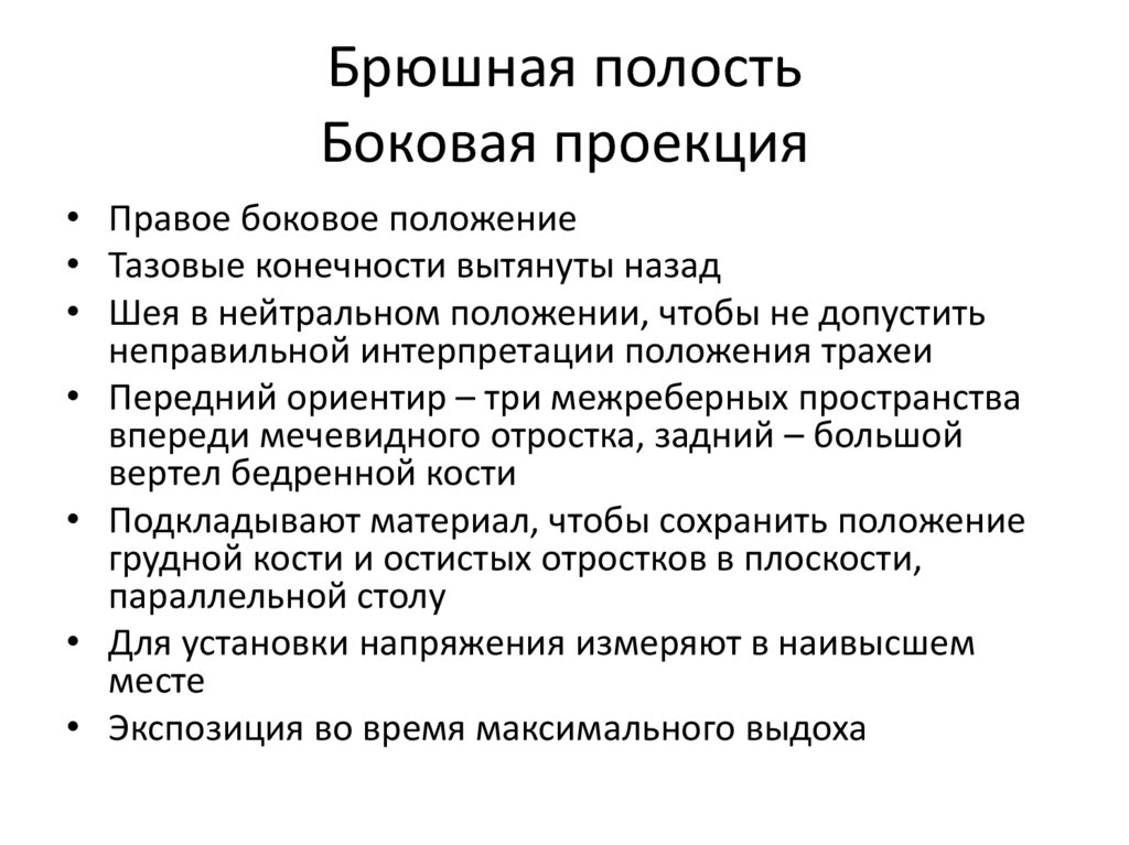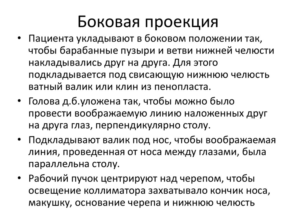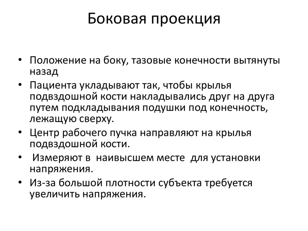 Боковая проекция• Пациента укладывают в боковом положении так,