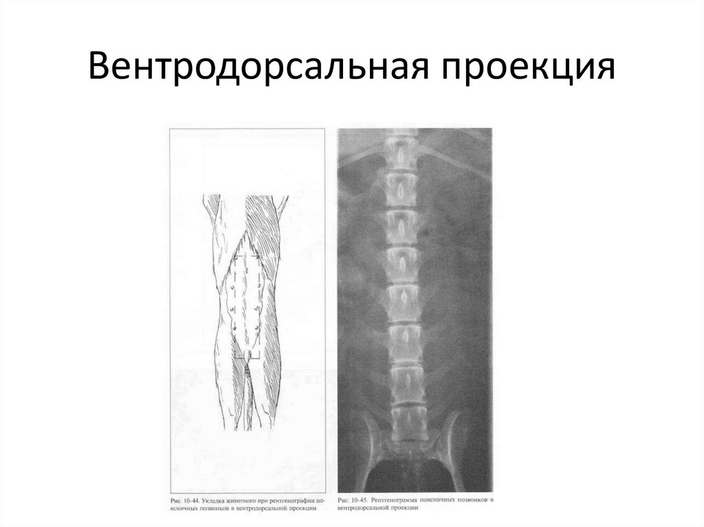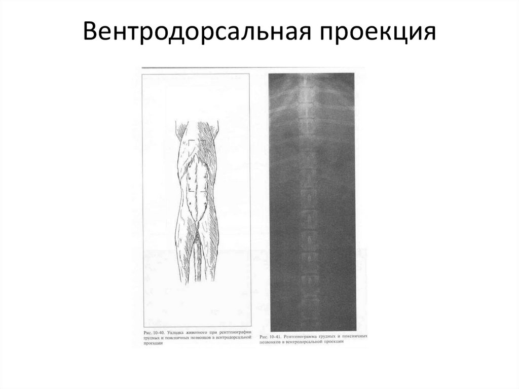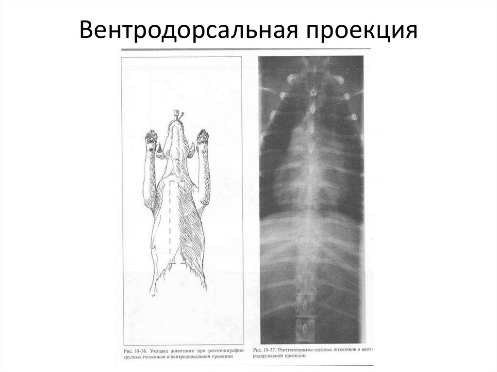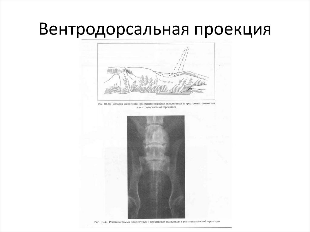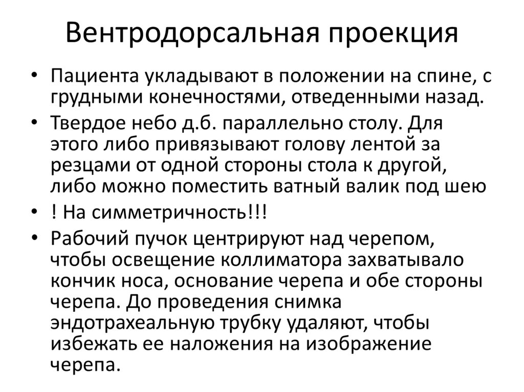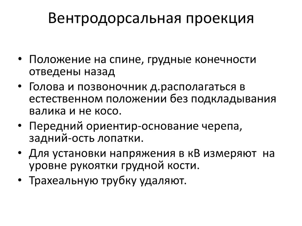 Вентродорсальная проекция• Пациента укладывают в положении на спине, с