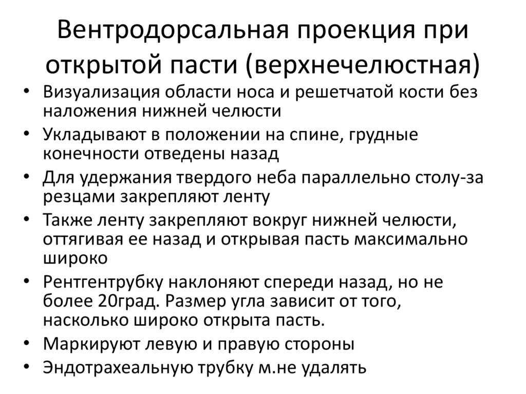 Вентродорсальная проекция приоткрытой пасти (верхнечелюстная)