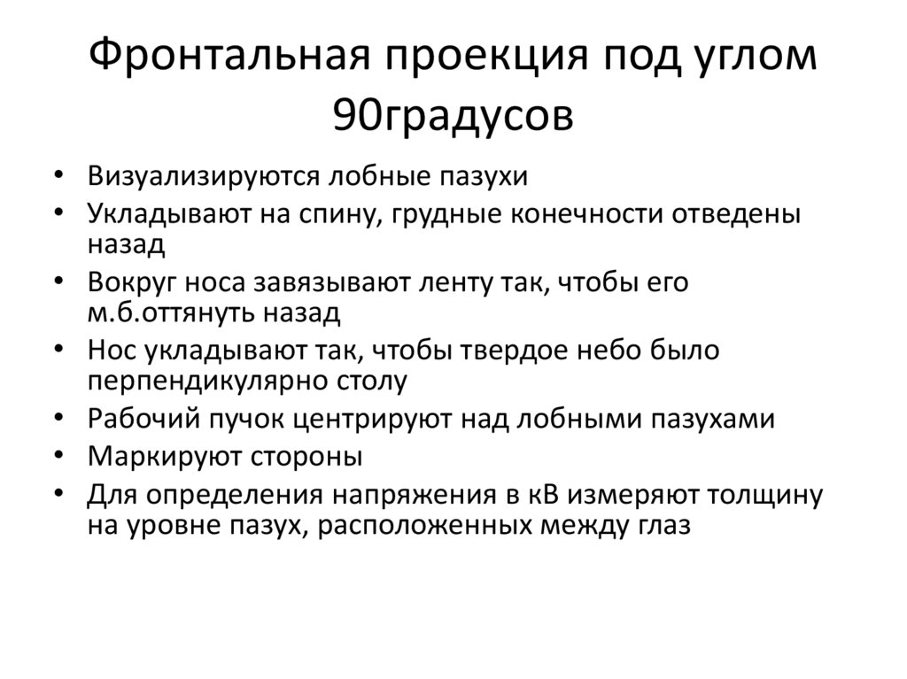 Ниже перечислены проекции, которые описываются понаправлению хода рабочего рентгеновского пучка, как он