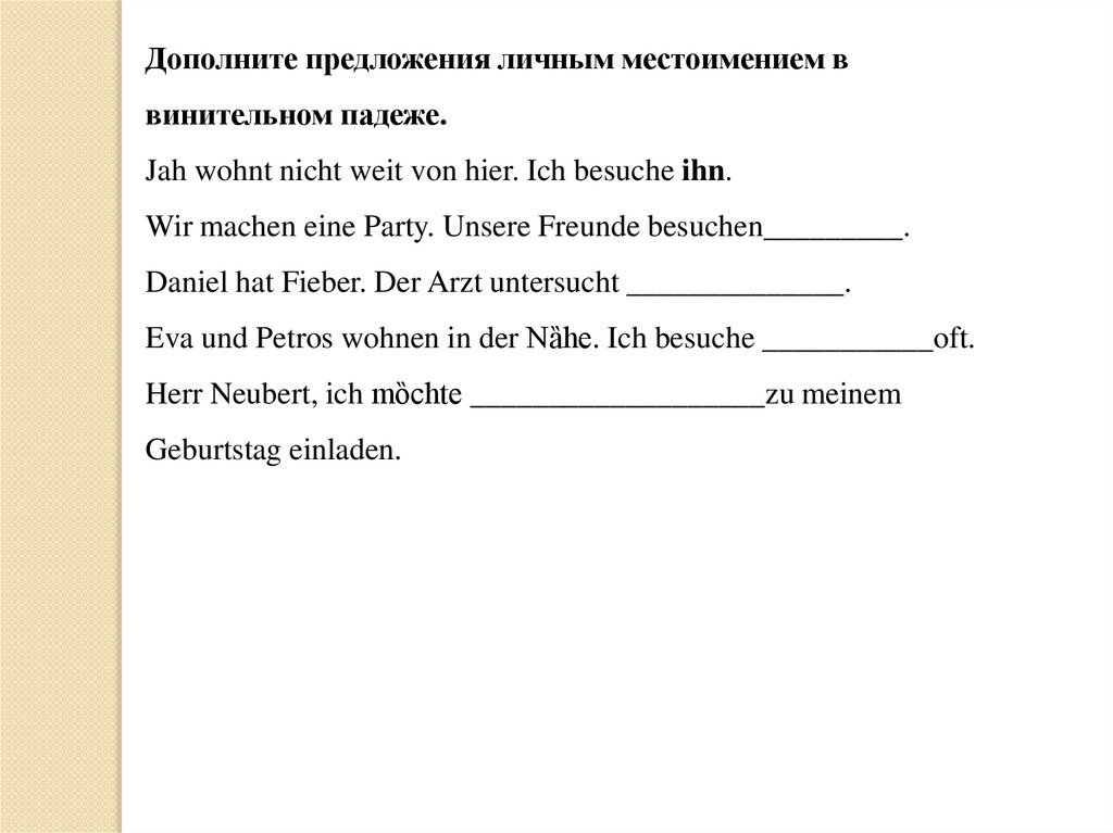 Дополните предложения личным местоимением ввинительном падеже.