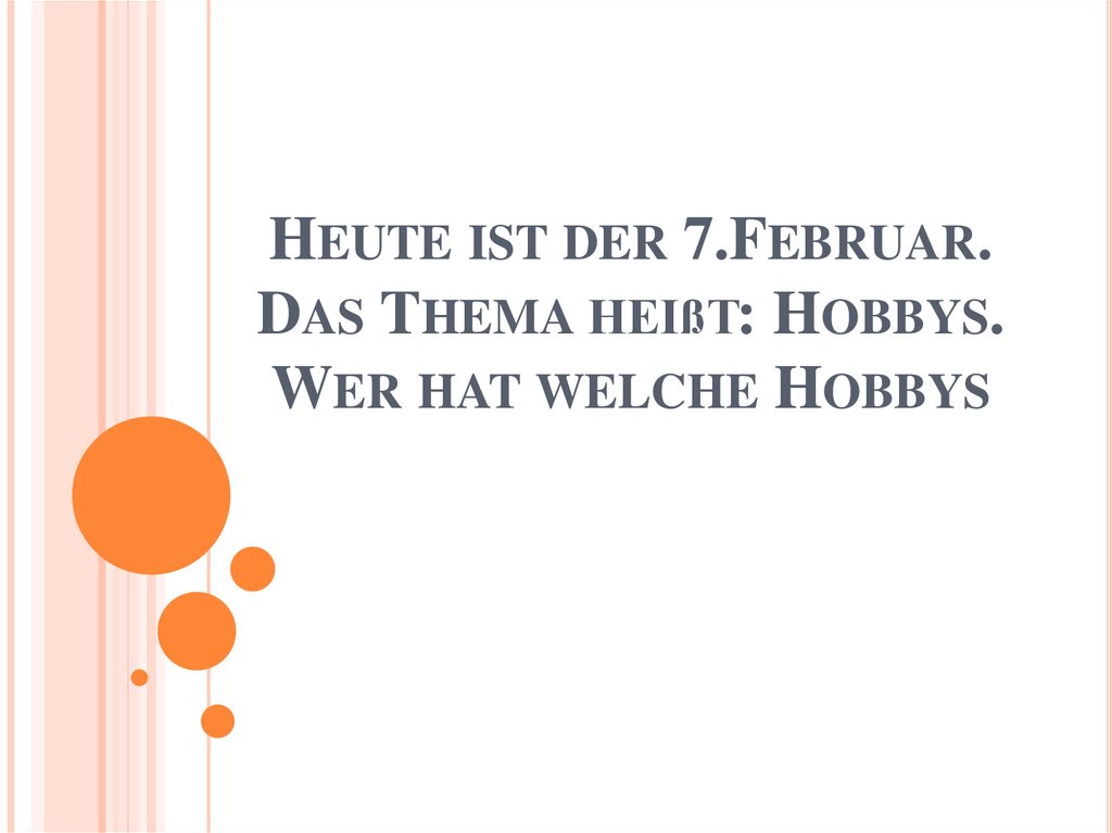 HEUTE IST DER 7.FEBRUAR.DAS THEMA HEIßT: HOBBYS.