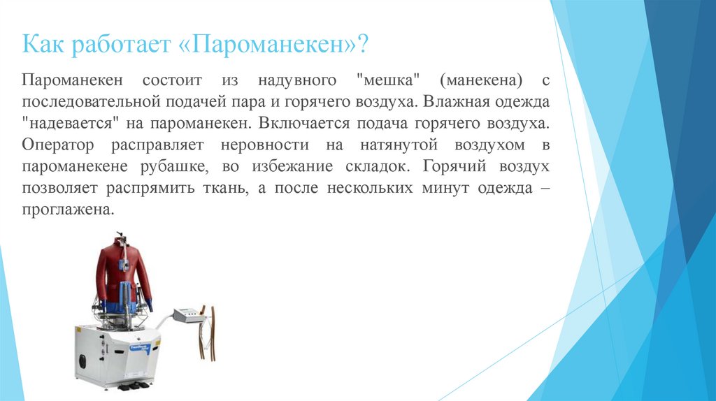 Что такое «Пароманекен»?Гладильный пароманекен представляет собой аппарат для ВТО