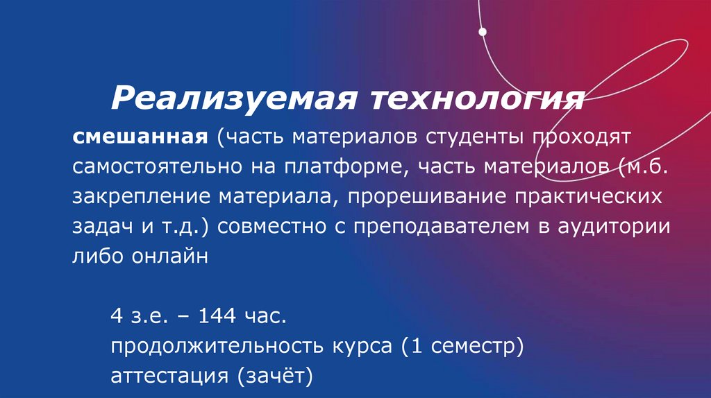 Реализуемая технологиясмешанная (часть материалов студенты проходят
