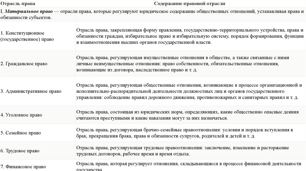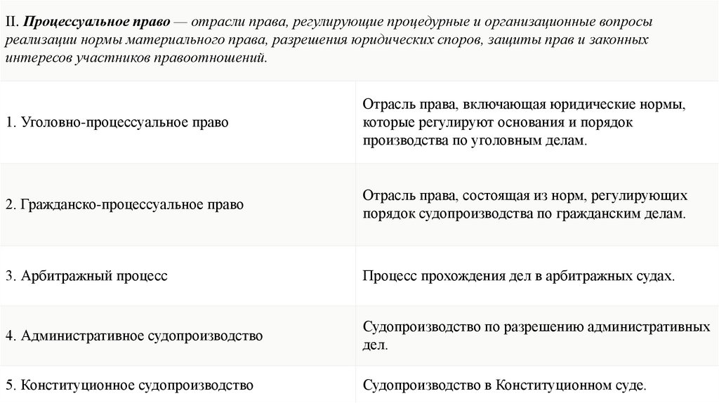 II. Процессуальное право — отрасли права, регулирующие процедурные и организационные вопросыреализации нормы материального права, разрешения юридических споров, защиты прав и законных