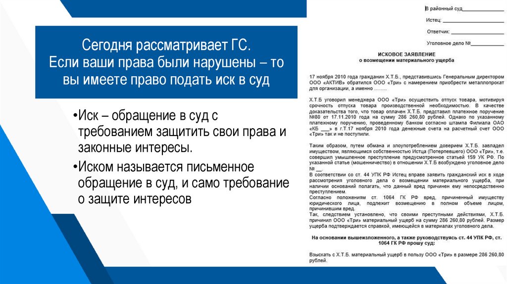 Сегодня рассматривает ГС.Если ваши права были нарушены – то
