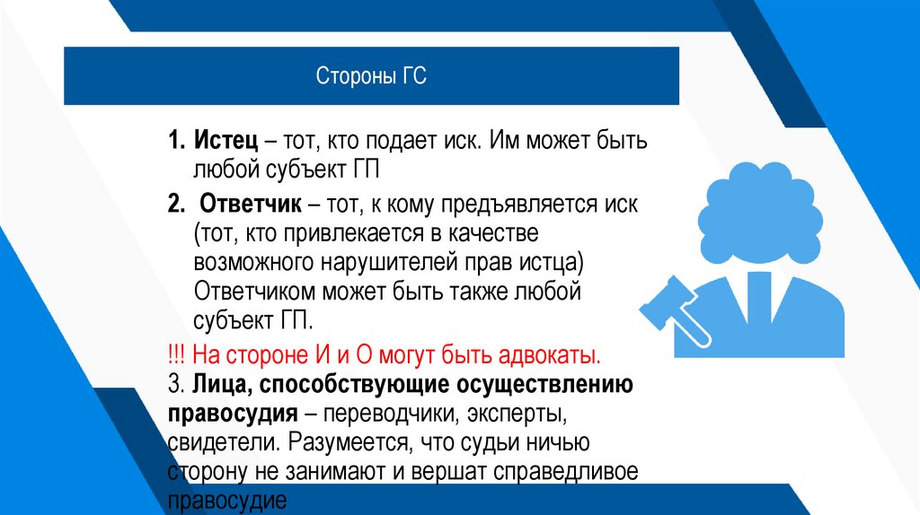 Стороны ГС1. Истец – тот, кто подает иск. Им может быть
