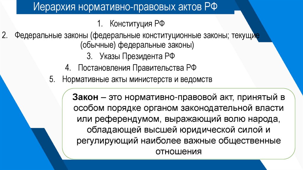 Иерархия нормативно-правовых актов РФ1. Конституция РФ