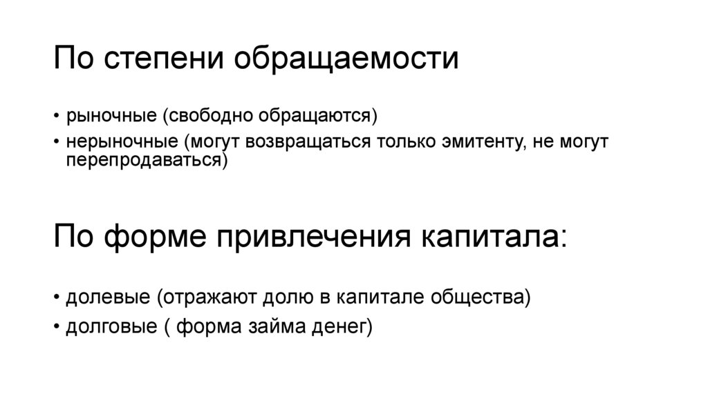 • нерыночные (могут возвращаться только эмитенту, не могут