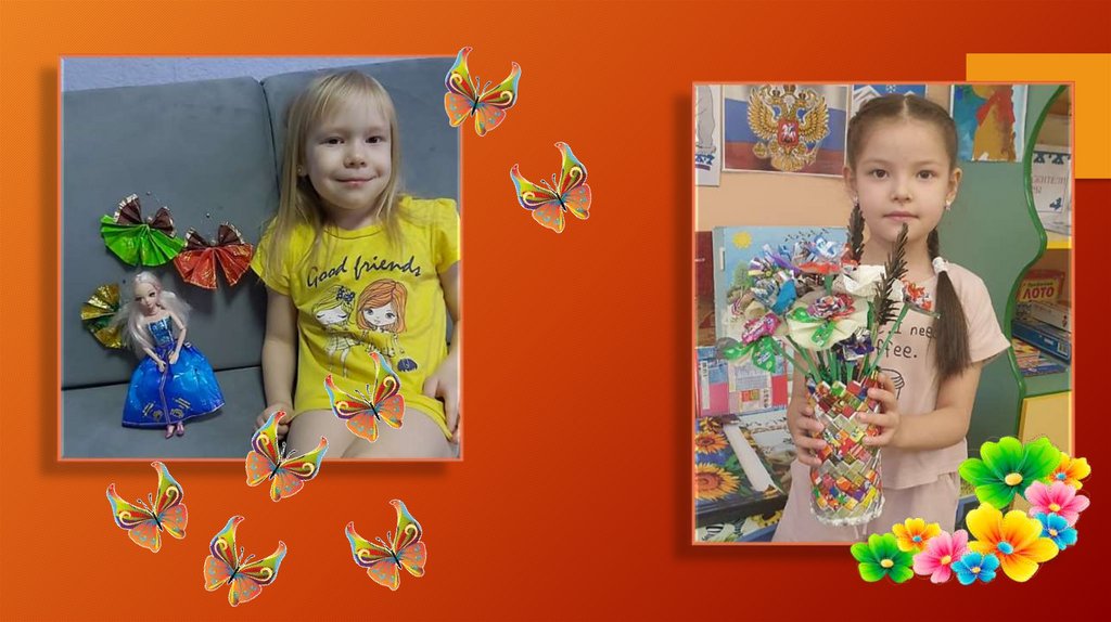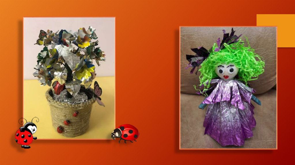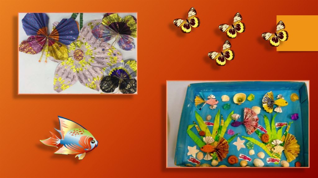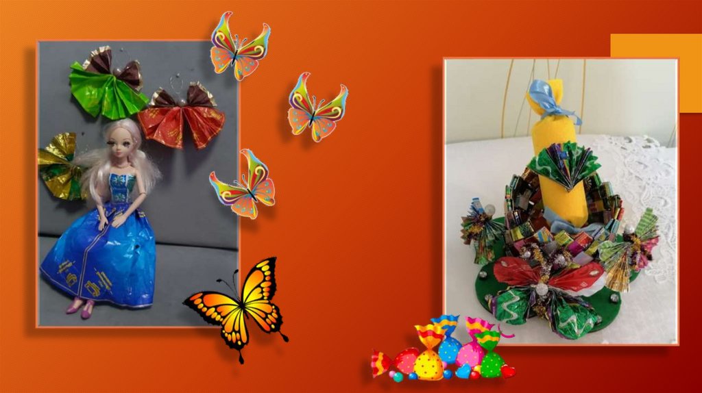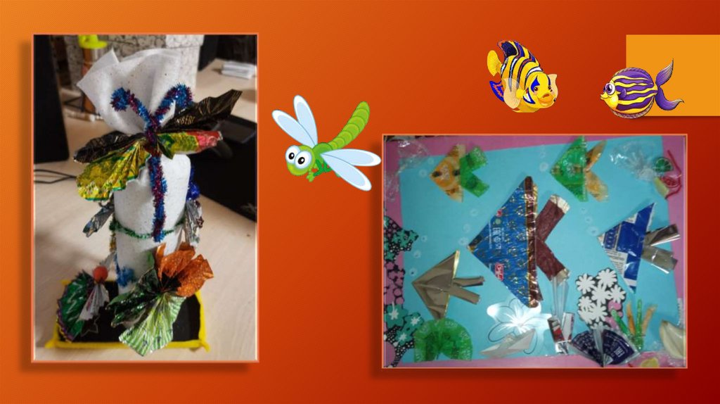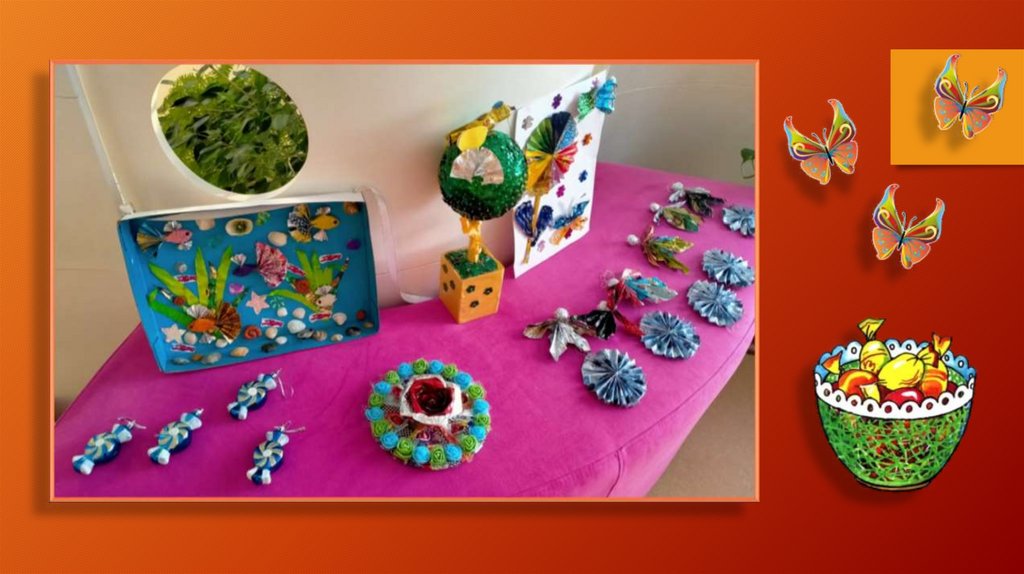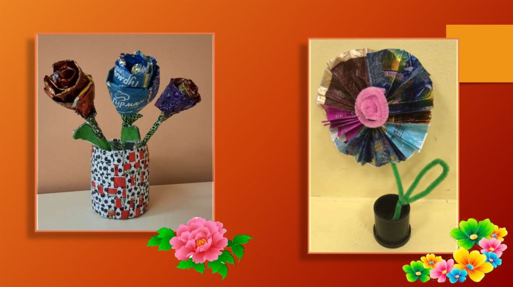 Композиции из бросового материала (конфетные фантики)