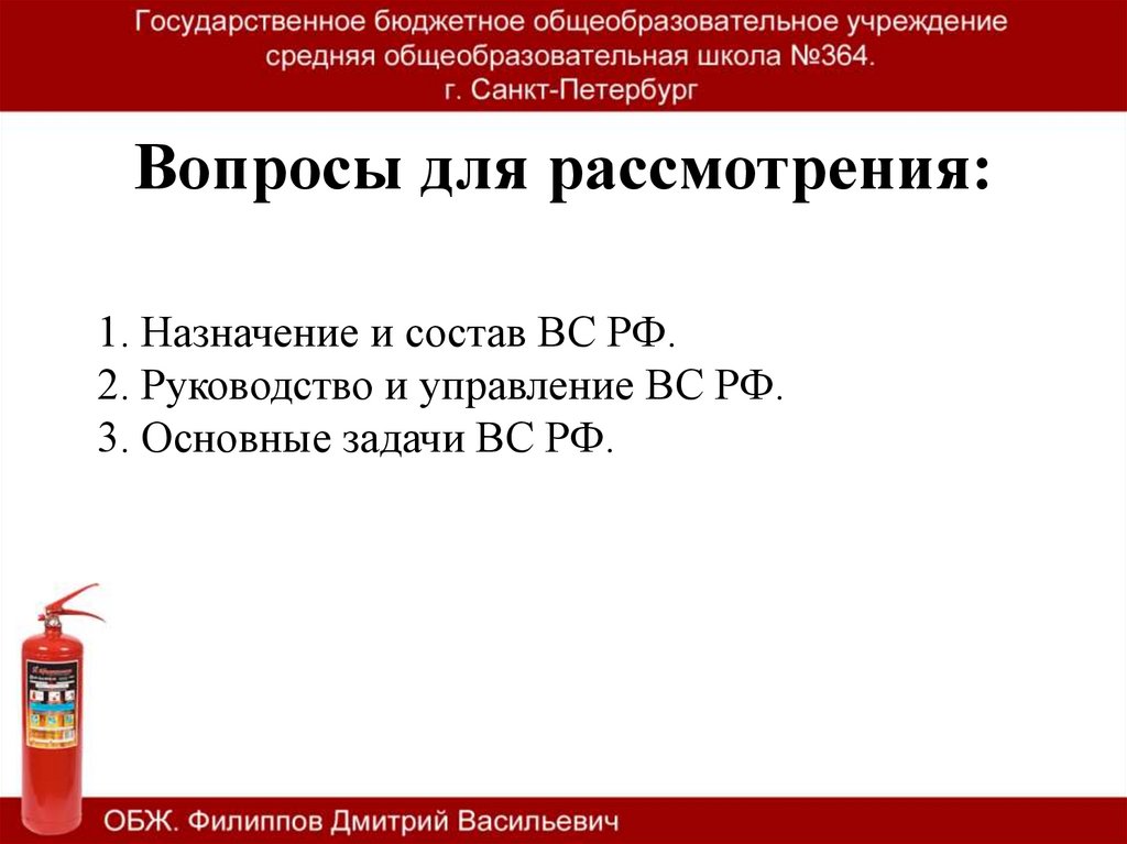 Вопросы для рассмотрения:1. Назначение и состав ВС РФ.