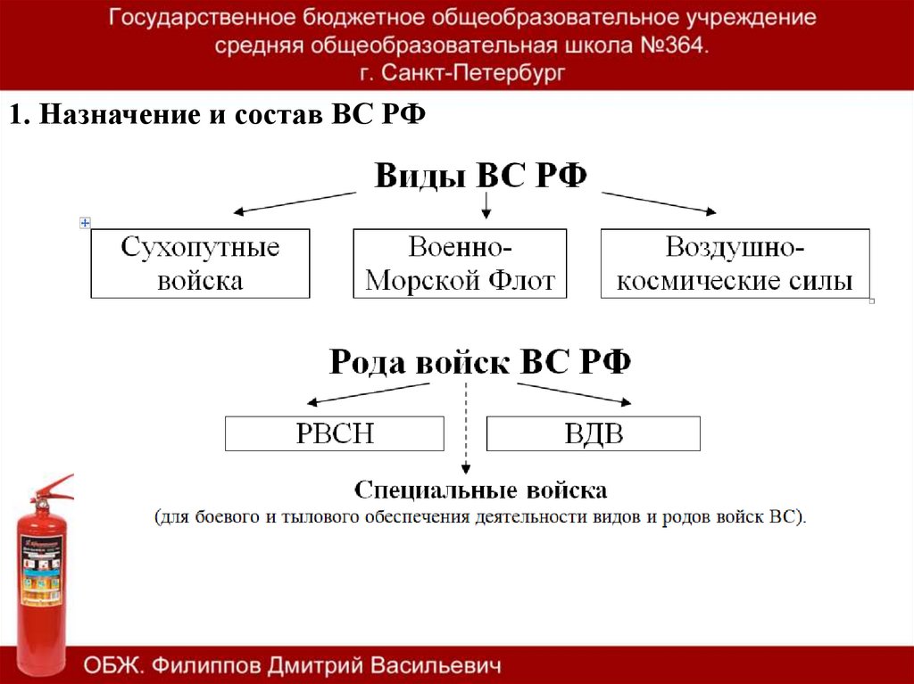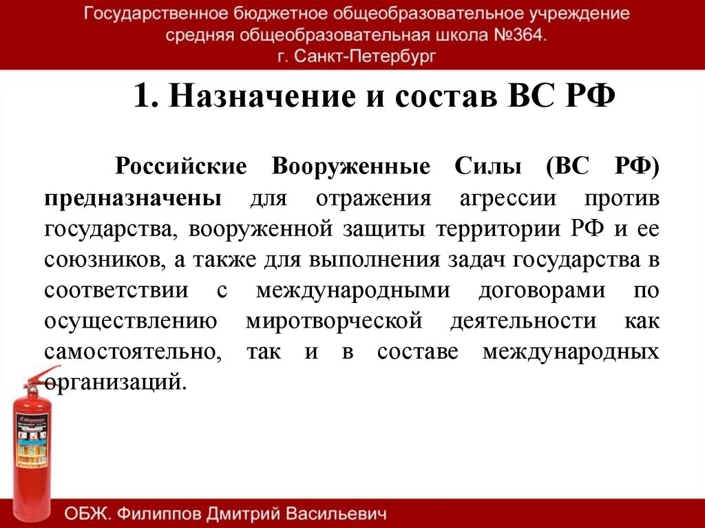 1. Назначение и состав ВС РФРоссийские Вооруженные Силы (ВС РФ)