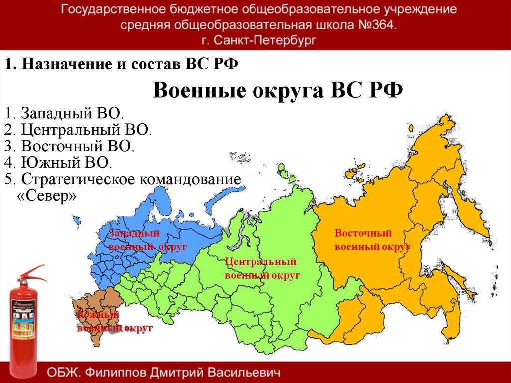 1. Назначение и состав ВС РФВоенные округа ВС РФ