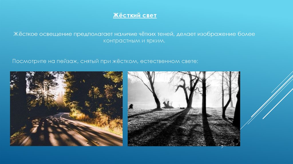 Жёсткий светЖёсткое освещение предполагает наличие чётких теней, делает изображение более