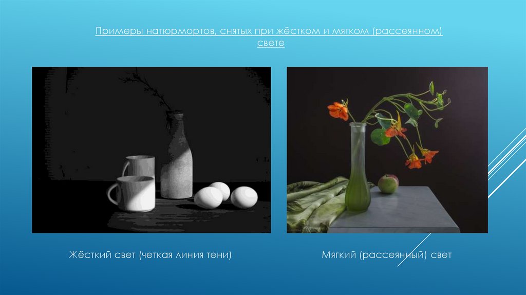Примеры натюрмортов, снятых при жёстком и мягком (рассеянном)свете