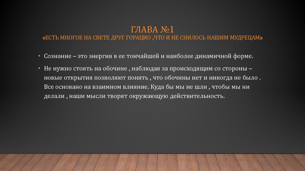 ГЛАВА №1«ЕСТЬ МНОГОЕ НА СВЕТЕ ДРУГ ГОРАЦИО ,ЧТО И НЕ СНИЛОСЬ НАШИМ МУДРЕЦАМ»
