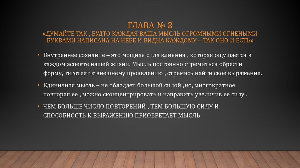 ГЛАВА № 2«ДУМАЙТЕ ТАК , БУДТО КАЖДАЯ ВАША МЫСЛЬ ОГРОМНЫМИ ОГНЕНЫМИ